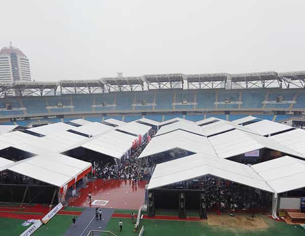 大型篷房給大家所帶來(lái)的魅力并不全在于外觀,更在于便捷性。對(duì)于不同場(chǎng)地的大小,可以自由組合篷房的間數(shù)。對(duì)于場(chǎng)地的地面無(wú)論是沙地,草地,水泥地還是如大理石那樣不能破壞的地面,大型蓬房可以用膨脹螺絲、鋼釬以及專業(yè)的承重盤(pán),使篷房都能安全穩(wěn)固的進(jìn)行搭建和使用。